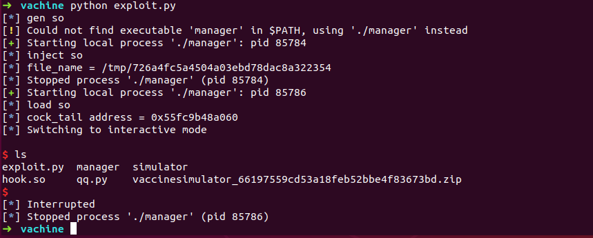 p.recvuntil("Your cocktail vaccine is saved at ")